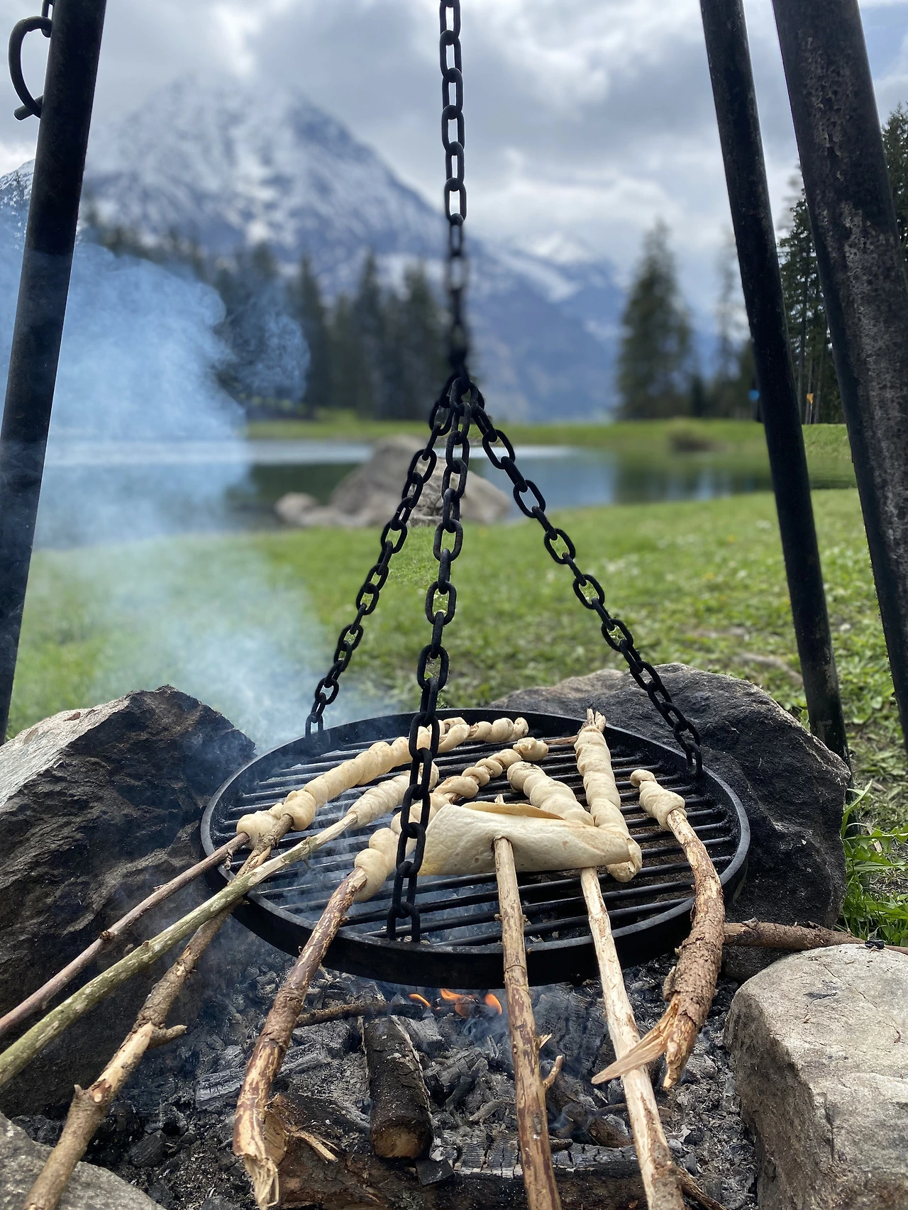 그들이 넉넉히 우리 것까지 가져온 소시지를 굽고 플로린이 가져온 빵 반죽을 나뭇가지에 돌돌 말아 불 위에서 구워 먹는 Schlangenbrot (Schlange는 뱀이라는 독일어로, 뱀 모양 빵) 도 만들어 불 위에 올려 타닥타닥 불 소리를 들으며,