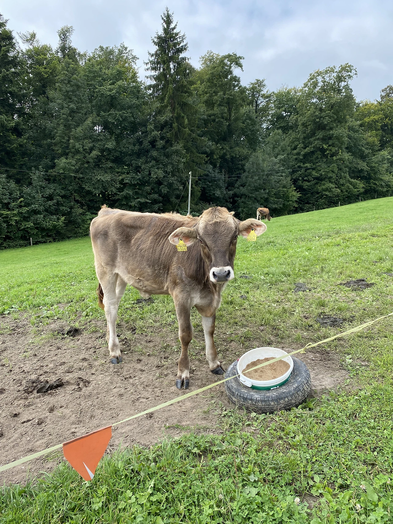 스위스 등산로에는 가끔 등산로를 벗어나 소들의 영역을 가로질러 다시 등산로로 가야 하는 곳이 있는데, 그런 곳을 지나야 했다. 울타리가 쳐져 있어도 가까이 가기 부담스러운데 그 안으로 내가 들어간다고? 오마이.