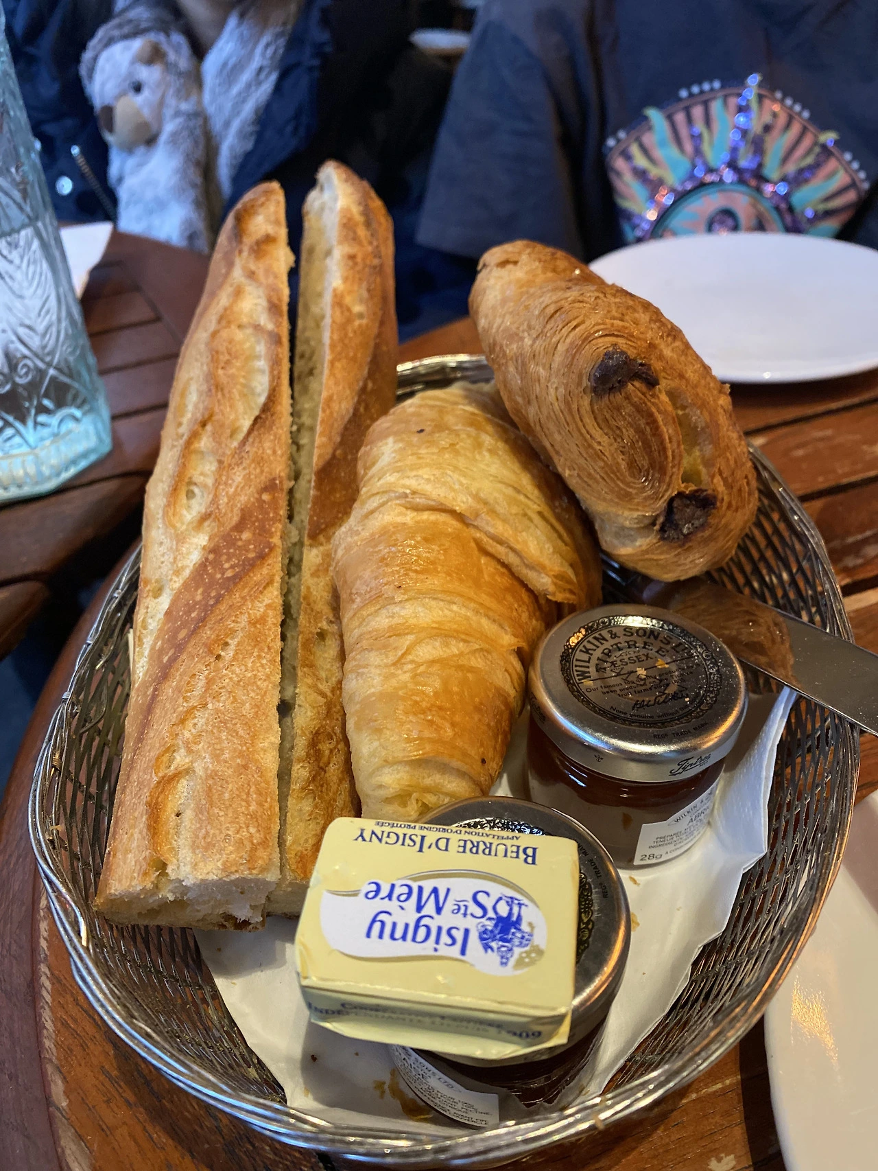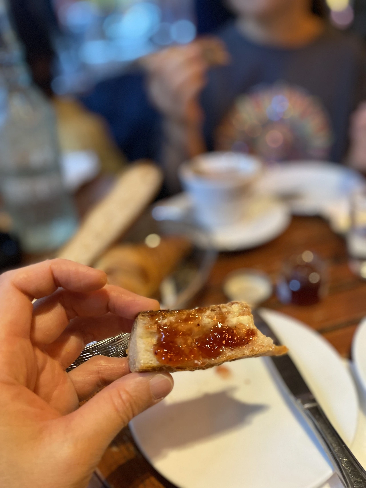 제일 먼저 이번 여행 내내 아침으로 먹었던 Tartine. 바게트빵에 버터와 잼을 발라 먹는 프랑스인들의 대표 아침인데 바삭하고 쫄깃한 바게트빵이 버터, 쨈과 만나 담백하고도 고소한 풍미가 정말 음~ 프랑스에 왔구나 느껴지는 맛이다. 독일 유학 시절에 2년가량 같이 살았던 프랑스인 스테파니도 아침마다 이렇게 먹었었다. 독일 바게트가 맛없다는 불평도 아침마다 했었다. ㅎㅎ 잘 사니, 스테파니? 오 갱끼 데쓰까!