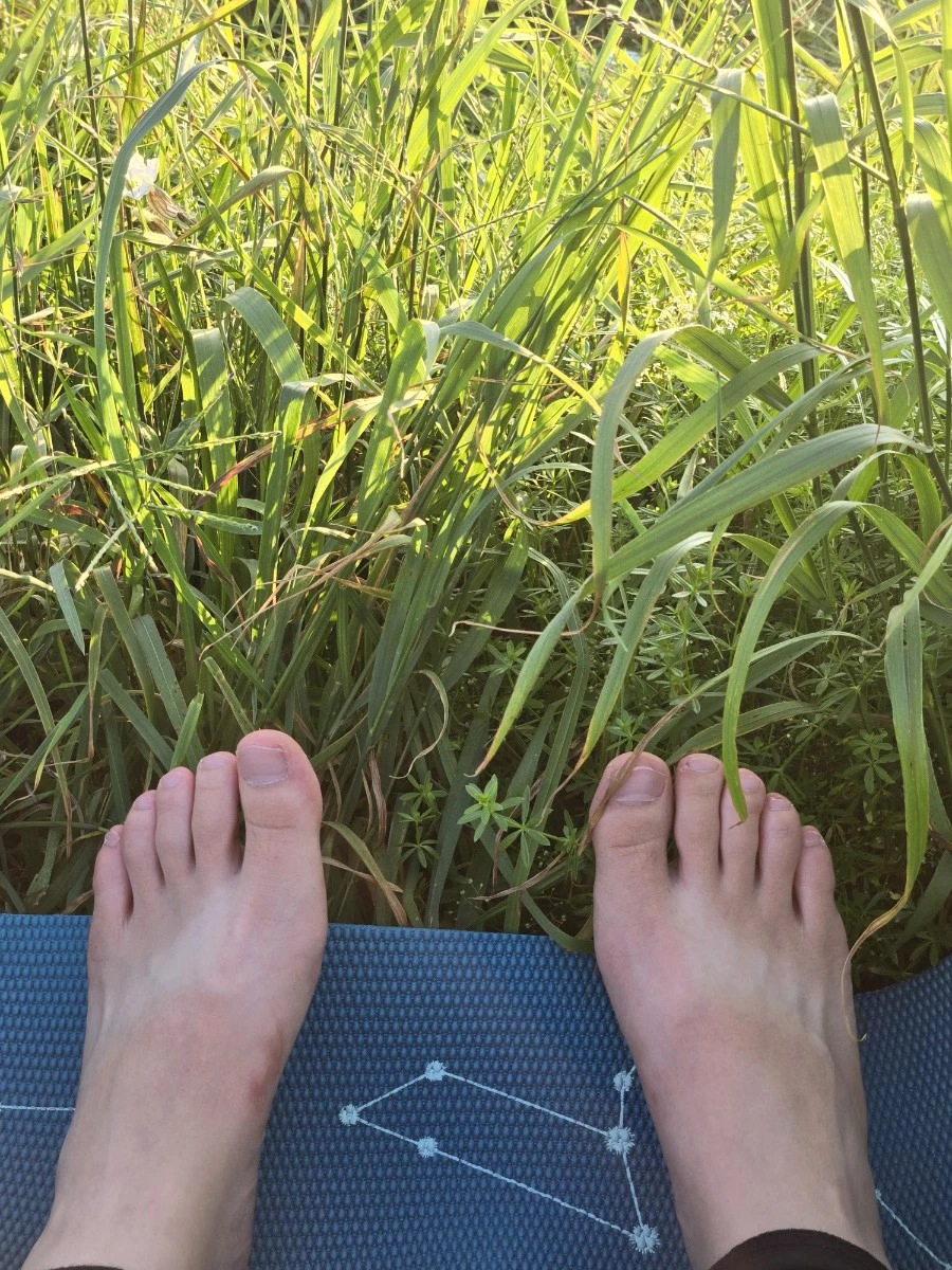 굴곡진 땅바닥과 얽히고설킨 풀들 사이에 매트를 피고 맨발로 땅의 촉각을 느끼며 하는 수련은 그간 요가원 내부에서 하던 것과는 사뭇 달랐다. 울퉁불퉁한 흙 때문에 중심 잡기가 어려웠고 내가 제대로 포즈를 취하고 있는 건지 아닌 건지 조차 너무 헷갈렸다. 그래서 그냥 온몸을 자연바람과 풀내음에 맡기고 그냥 흐르는 대로 취했던 기억이 난다.