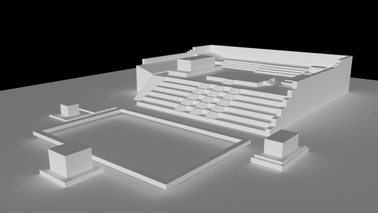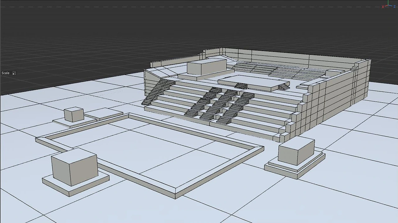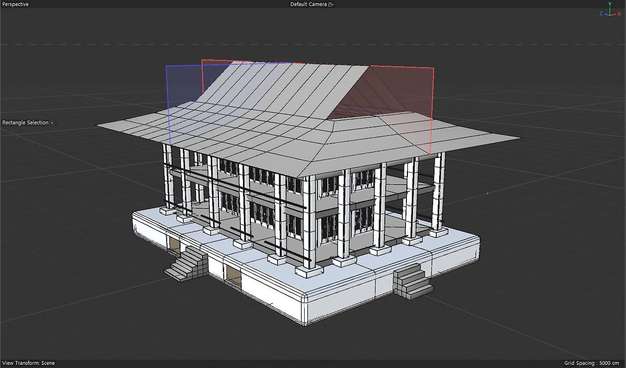 기본 틀을 잡는데도 생각보다 디테일이 요구되었고 그렇게 단순한 구조가 아니었음을 깨닫게 되었다. 그렇게 여러 번 시행착오를 거치며 빠르게 전체 틀 모델링을 끝내고, 본격적 구조물을 모델링으로 만들기 전 Blocking이라고 하는, 대략 사이즈를 가늠하고 레이아웃을 살피는 러프단계를 진행했다. 그러고 나서 본격적인 한옥 건축물 모델링을 진행하였다.