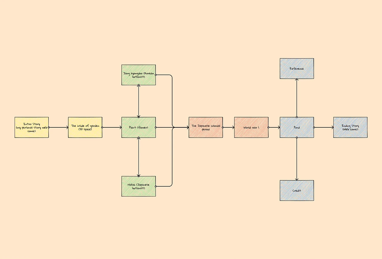 즉, 졸업작품 디벨롭에 초점을 맞췄기 때문에 간략히 나의 졸업작품에 대해 소개를 하자면 크게는 한국사를 테마로 나의 매화 이야기 실화를 기반으로 내가 느꼈던, 우리나라 고유 식물에 묻어있는 식민지 역사에 대해 세계인들에게 알리는 웹사이트를 개발하는 중이다. 단순히 사람에 대한 이야기가 아니라 그 시대를 살아간 동식물에게도 잊지 못할 상처와 식민지 흔적들이 고스란히 남아있다는 사실을 나 또한 나의 경험을 토대로 자각하게 되었고, 이를 기점으로 내가 만들고 있는 웹사이트에 대해 나름의 자부심을 가지고서 만들고 있다. 자세한 이야기는 나의 이전 브런치 글들을 참고하길 바란다.
