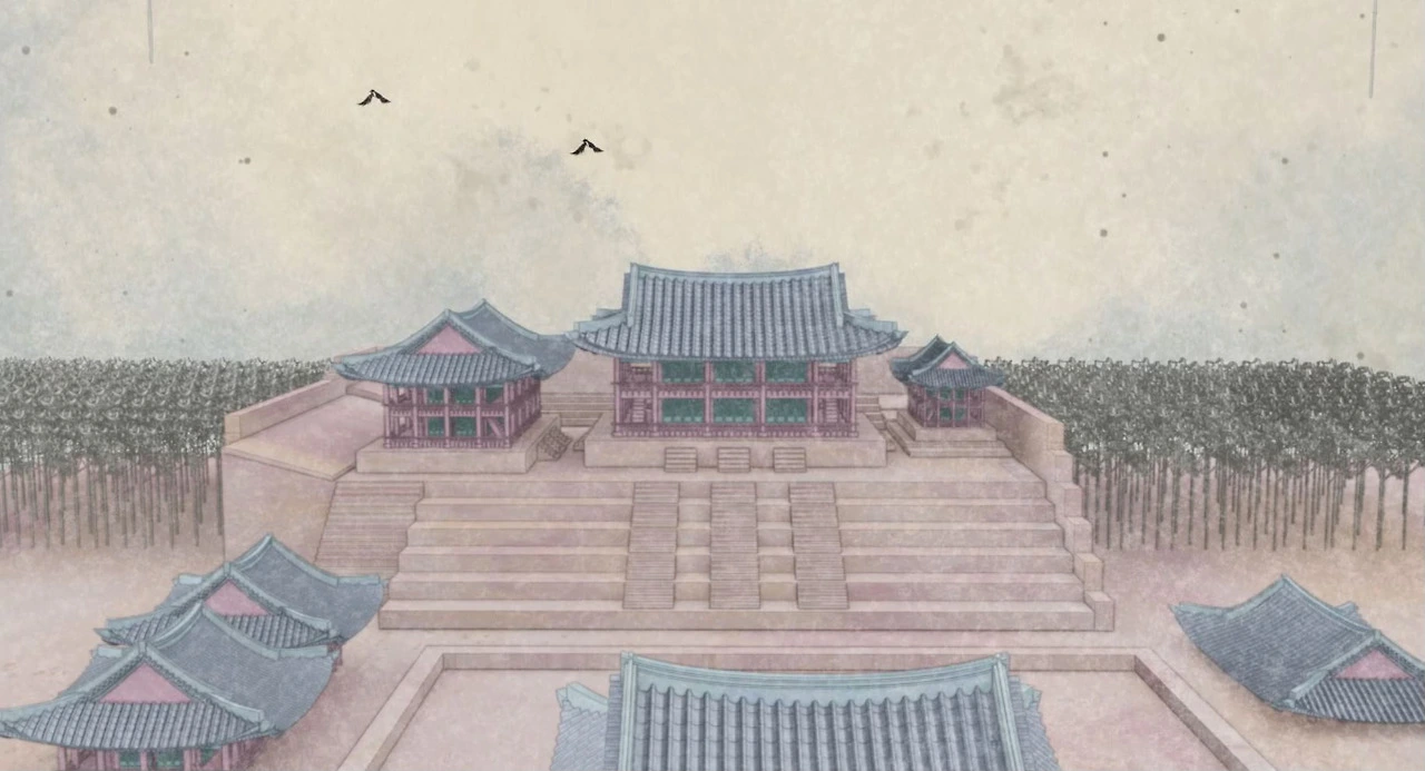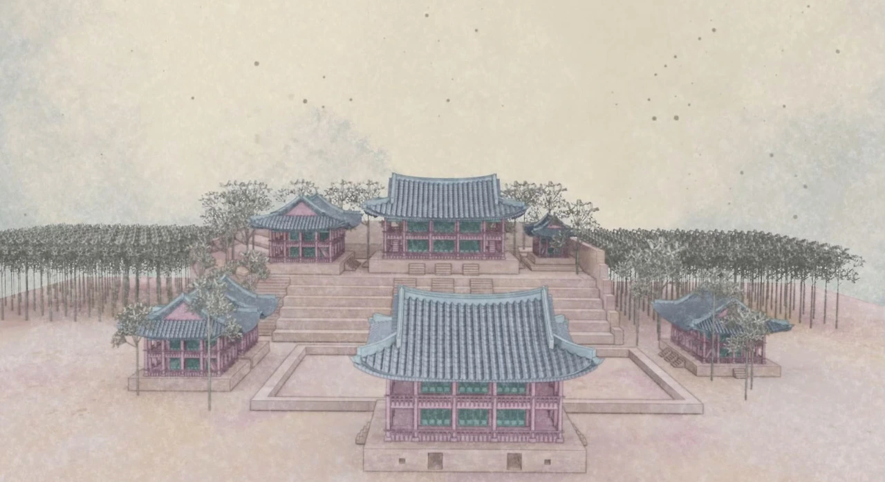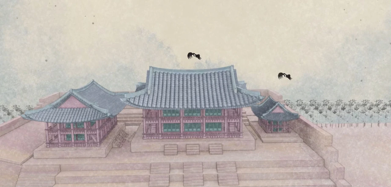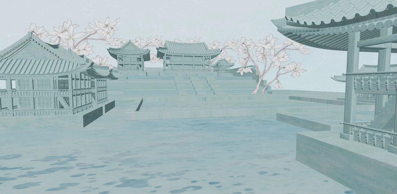그렇게 기와지붕까지 직접 모델링하여 올리고, 여러 디테일을 추가하면서 웹 최적화 방법을 리서치하였고 결국 웹에서 이 정도의 디테일한 모델링까지 올리는 것이 가능하다는 것을 수차례의 실험을 통해 찾아내었다. 그리고 C4D에서 그간 쌓아 올린 라이팅, 렌더링, 애니메이팅, 카메라 움직임, 그리고 나의 추가적 애니메이팅과 여러 보정 효과 등등을 에펙에서 화룡점정으로 마무리하여 최종 그래픽을 위처럼 뽑아내었다.