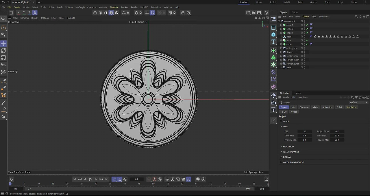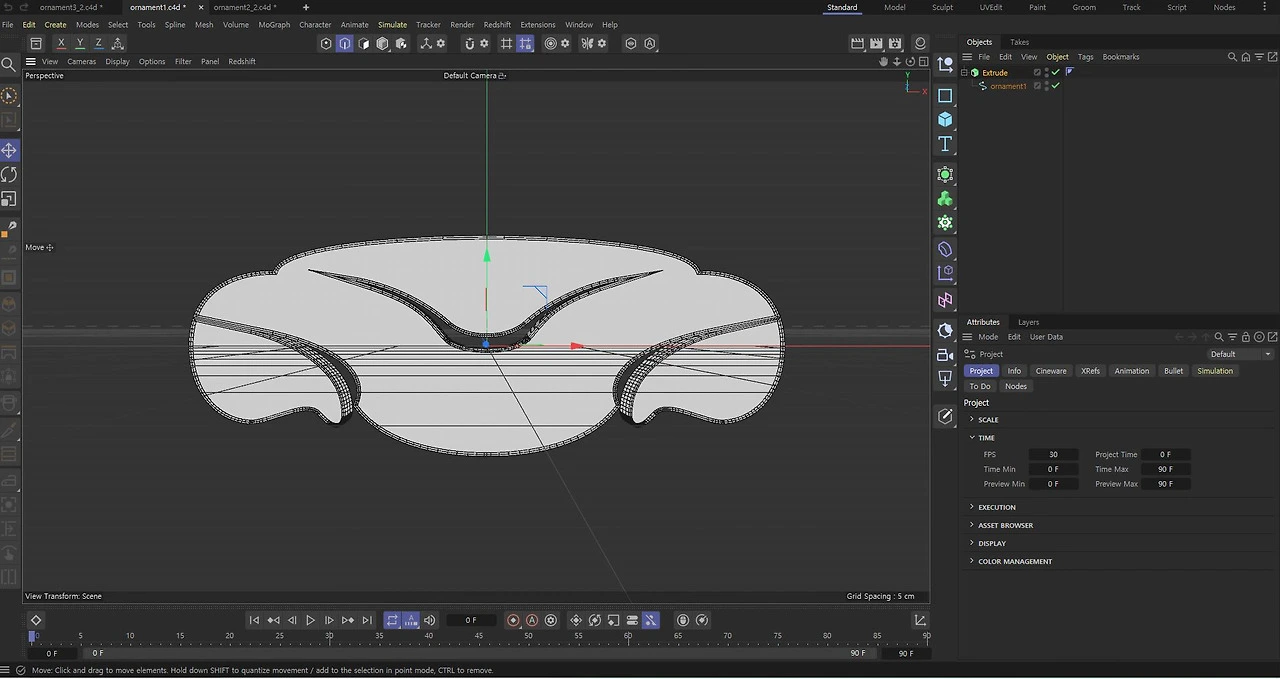 그리고 전개도 상에서 볼 수 없는 문양들에 대한 디테일은 따로 사진을 수집한 것을 토대로 간신히 구현하여 C4D의 2D 선을 3D 입체로 뽑아낼 수 있는 Extrude 기능을 사용하여, 입체로 만든 뒤 Remesh로 대략적 Topology를 구성하고서, 좀 더 손을 볼 부분들에 대해 스스로 다시 Retopology를 진행하여 완전한 모델링으로 만들었다. 각각 몸체에 들어갈 손잡이 부분과 기와지붕에 들어갈 디테일한 문양 부분들이다.