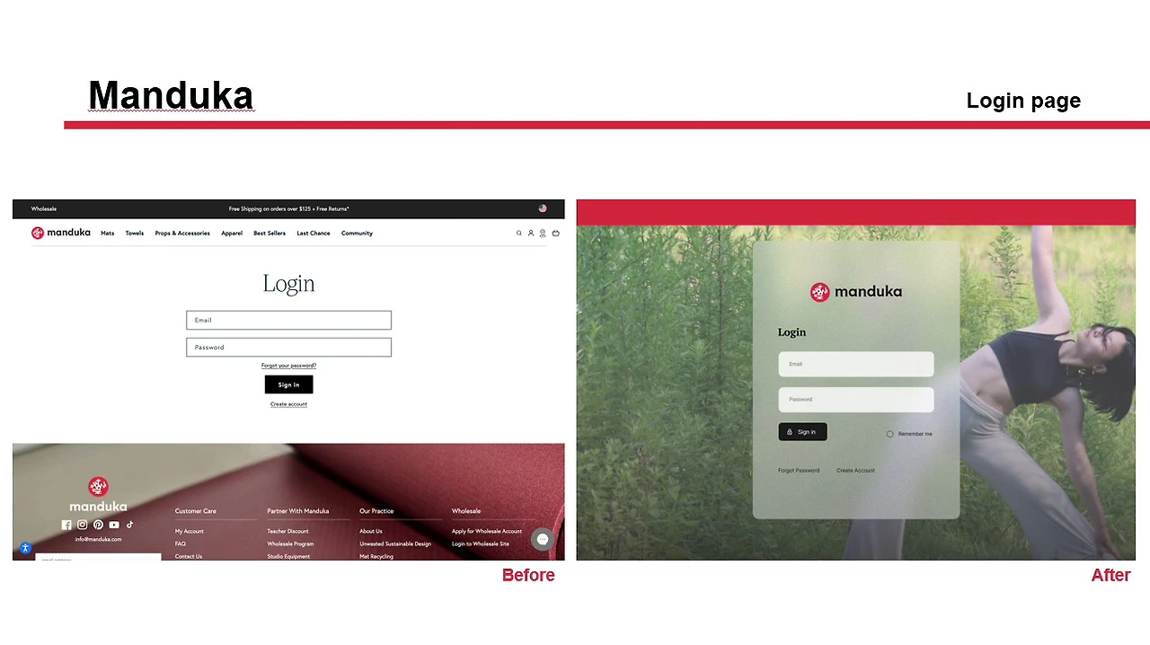 같은 디지털 제품군이라고 해도, 웹용인지 혹은 모바일 앱용인지에 따라 그리드와 디자인 요소들 간격, 그리고 폰트 사이즈등이 확연히 달라짐을 알 수 있다. 왜냐하면 화면의 크기와 밀접한 관련이 있는데 모바일은 상대적으로 컴퓨터 화면보다 작기 때문에 아이콘 크기가 좀 더 큼직하고 바로 핵심 기능이 밀집되어 있는 반면에, 웹용은 상대적으로 큰 화면과 사용확장성이 자유롭기 때문에 모바일에 비해 좀 더 실험적인 디자인을 할 수 있었다.