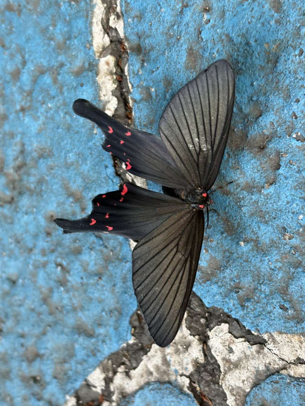 검은 날개에 붉은 점들이 아름답게 박힌, 거짓말 조금 보태서 손바닥보다도 큰 이 나비는 마치 자연계의 황제처럼 당당했습니다. 검색해 보니 우리나라에서 가장 큰 나비라고 하더군요.