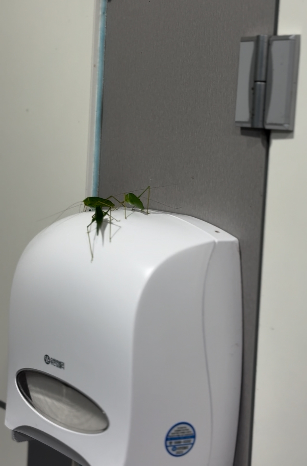 새벽 산행 전 화장실에서 발견한 여치들의 완벽한 ‘캠핑’ 현장입니다. 화장실 들어가자마자 깜놀했습니다.