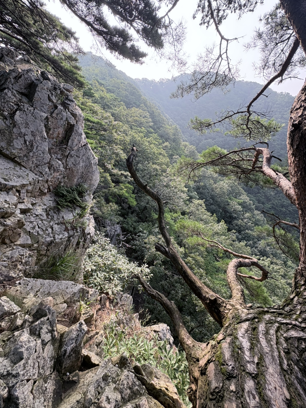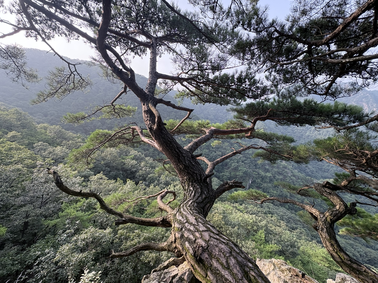 정상에서 멍 때리기 좋은 제가 좋아하는 소나무입니다. 누워있는 것이 마치 앉으라고 손짓하는 것 같습니다.