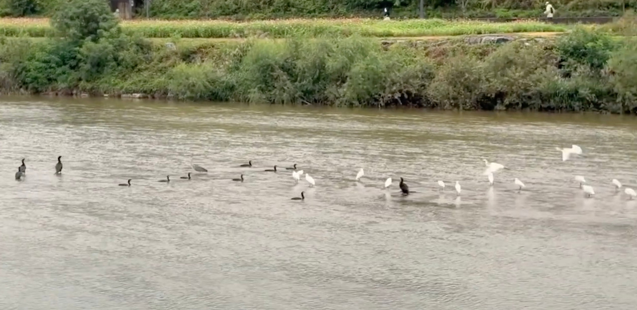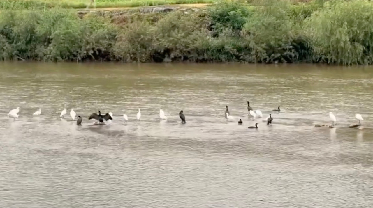 상황: 자리를 잡고 있는 백로 군단 속으로 진입하는 가마우지 군단