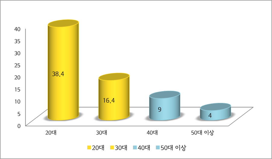 [한국 밀레니얼의 출생연도별 인구 비중]