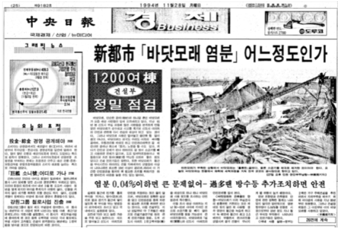 그림 2. 신도시 부실공사 관련 신문기사 (중앙일보, 1994년 11월 28일)