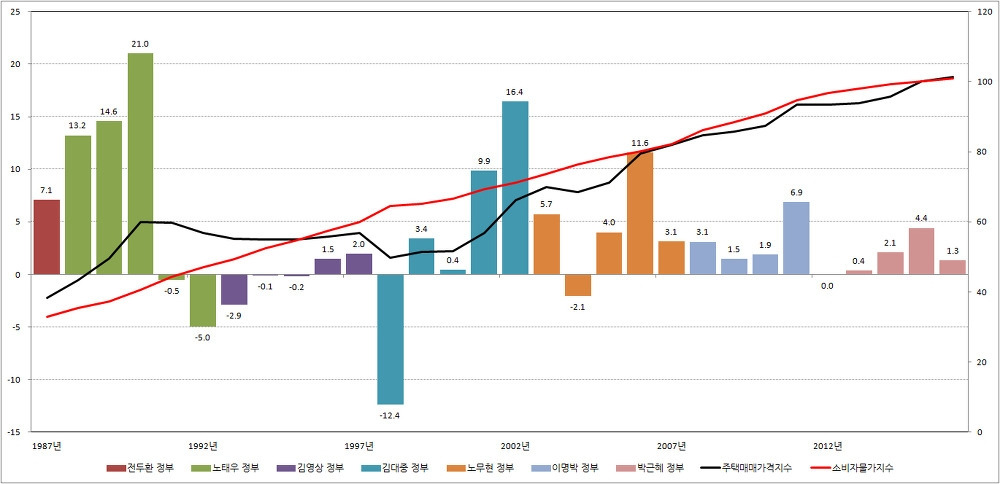 그림 3. 한국 역대 정부 주택 가격 상승률 비교