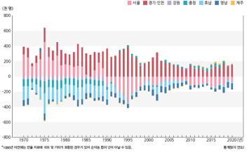<그림 8> 우리나라 지역별 순이동자(1970~2020)