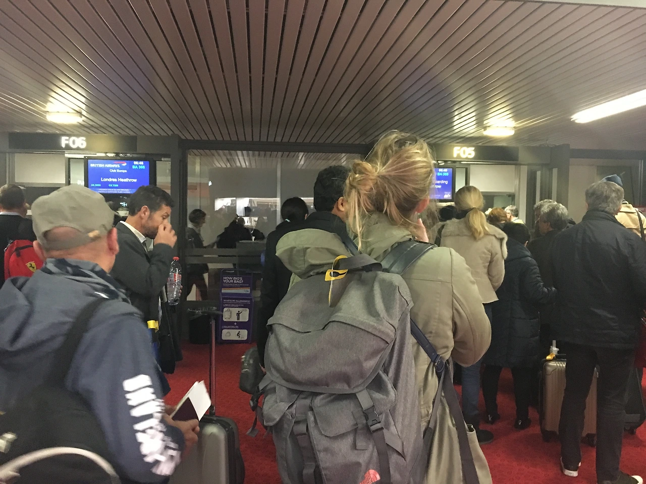 이른 아침에도 불구하고 자리가 만석이 아닐까 싶을 정도로 많은 사람들이 나와 같은 항공편을 기다리고 있었다. 같은 게이트 앞에서 대기하고 있는 탑승객의 남녀 비율은 6:4 정도, 대체로 40~50대 연령대 아니면 어린이를 포함한 가족단위의 탑승객이 많았다. 영국 내셔널 에어라인이기는 하지만 역시 리옹 출발이라 그런지 영어보다는 프랑스어가 압도적으로 더 많이 들려왔다.
