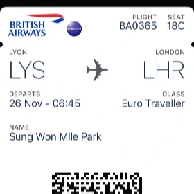 전날 늦잠으로 인해 비행기를 놓치고 나서 급하게 산 항공편. 영국항공도 언젠가 꼭 타고 싶었던 에어라인 중 하나였지만, 이런 식으로 처음으로 타게 될 줄은 꿈에도 몰랐다. 1회 경유 포함이긴 했지만, 리옹-암스테르담 구간 항공편을 하루 전에 사는 거 치고 110유로라는 정말로 말도 안 되게 싼 값으로 내놓은 영국항공에게 그저 감사한 마음뿐이었다. 저가항공사는 아예 항공편이 없었을뿐더러, 그나마도 항공편이 있는 에어프랑스나 KLM은 아무리 싸도 450유로 이상인 바람에 택하게 된 영국항공. 이 편에서는 리옹에서 런던 히드로 공항까지 향하는 항공편 후기를 써보고 싶다.