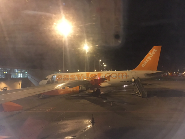암스테르담으로 갈 때 한번 비행기를 놓친 아픈 기억이 아직 생생히 떠오르던 이 날, 두 번 다시는 그런 실수를 하지 않으리라 다짐하며 밤을 새우고 도착한 암스테르담 스키폴 공항. 이지젯은 이미 예전에 로마에 갈 때 한 번 타본 적 있지만, 아무리 같은 항공사일지언정 행선지 따라 시간대 따라 다른 모습이 보이겠지, 하는 기대감에 이렇게 끄적여본다. 탑승하기 시작한 오전 6시 40분경의 하늘은 여전히 어두컴컴했지만, 이지젯 특유의 밝은 오렌지색 꼬리는 검은 새벽하늘 아래에서도 그 에너지를 발산하는 듯했다.