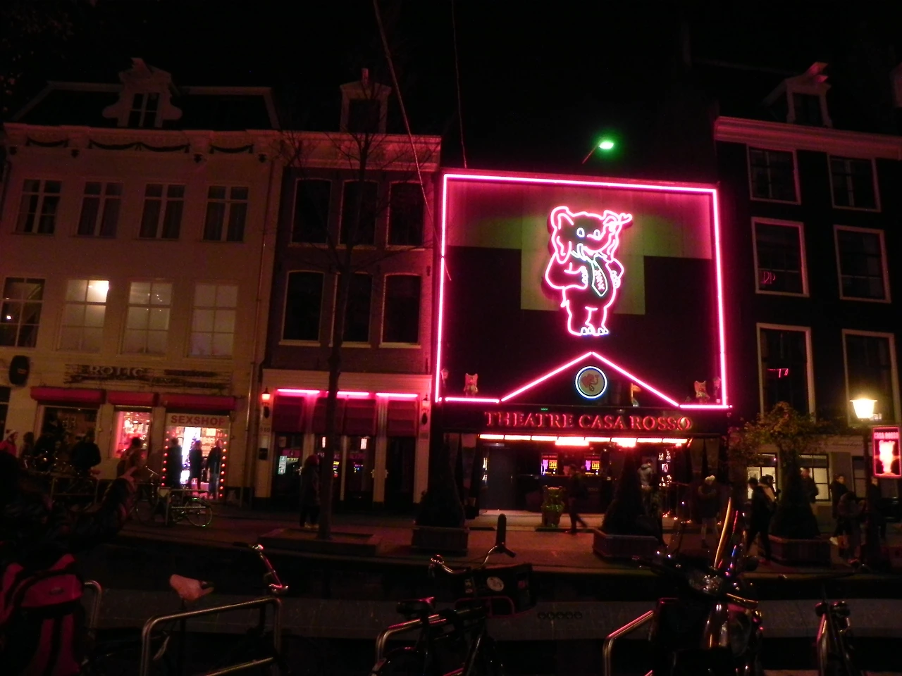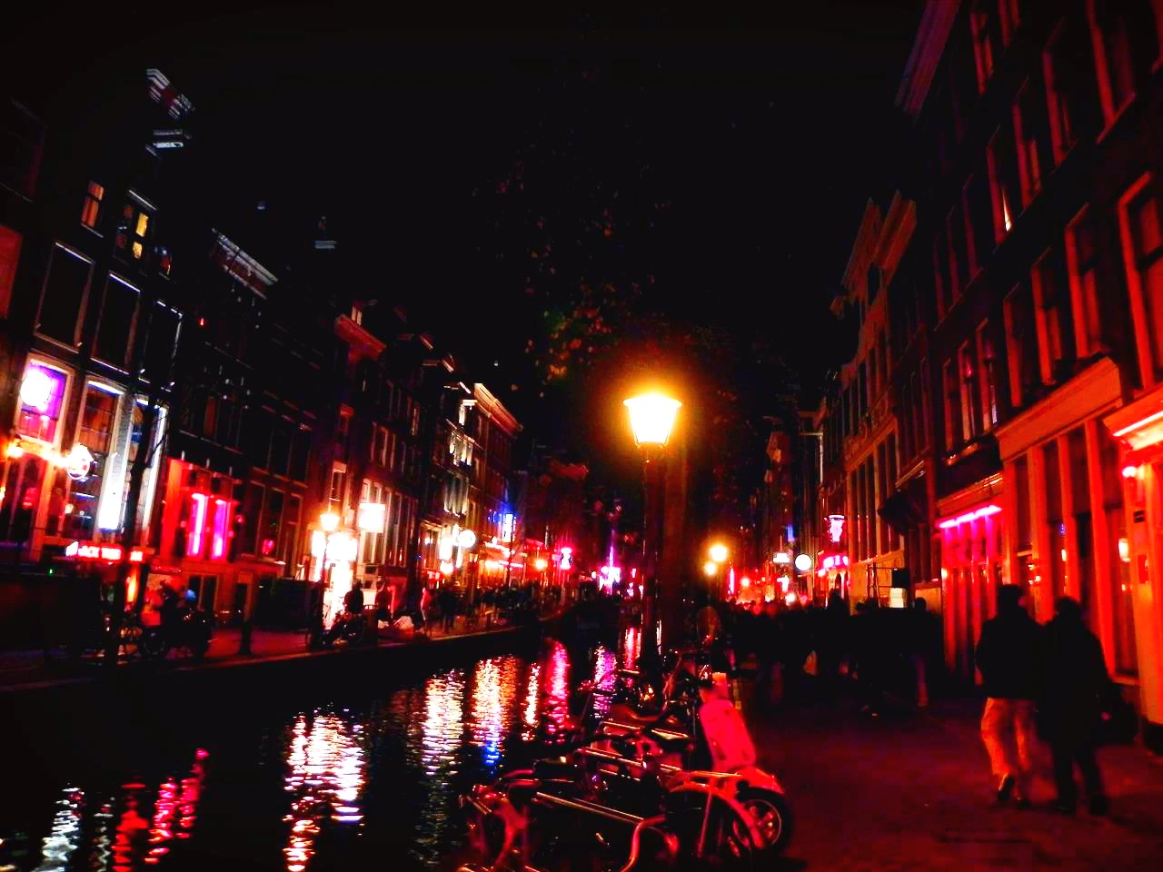 아직 내 눈 앞에 펼쳐졌던 광경의 여운이 쉬이 가시지 않은 채 주변을 두리번거리다가, 빨간 조명으로 물든 창문이 하나 둘 보이기 시작했다. 창문 너머로 무언가가 보이는 거 같아 건너편에서 물끄러미 바라보니, 그 붉은 불빛 아래 속옷만 입은 여자들(여기서는 워킹 걸이라 칭하겠다)이 앉아 지나가는 행인들을 바라보고 있었던 것이다. 사람들도 지나가다가 무표정으로 자기들을 바라보는 그 여자들을 올려다보며 일행들끼리 속닥이거나 웃으며 대화를 나누고 있었다. 어떤 워킹걸은 자기를 어느 정도 계속 바라보는 행인에게 윙크를 날리며 오라는 손짓을 하고는 했다. 나도 그 대상 중의 하나이기도 했다. 그녀들에게 고객은 남자든 여자든, 그냥 관광객이든 진짜 그런 목적으로 온 사람이든 상관없는 듯 보였다. 오히려 관광객을 더 반기는 것도 같은 느낌.