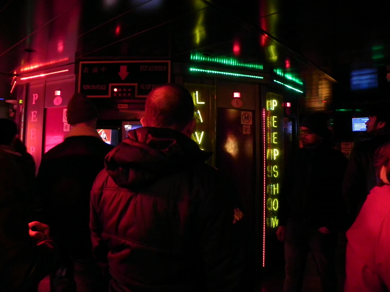 입장을 해보니, 왜 유독 여기가 사람들이 많이 몰리는지 단번에 이해가 됐다. 2분 관람에 2유로. 너무 깊이는 말고 맛보기로 이 곳 홍등가를 경험해보고 싶은 관광객에게 안성맞춤의 가격과 패키지였다. 아니나 다를까 이 곳에 와있는 대부분의 사람들은 영어, 독일어, 프랑스어 등의 다른 나라 언어를 쓰고 있었고, 적어도 현지인의 느낌이 나는 사람은 거의 없었다. 남자의 비율이 압도적으로 많긴 했지만 여자도 생각보다 꽤 있었다. 다들 호기심 어린 눈빛으로 문 앞에 대기하고 있었다.