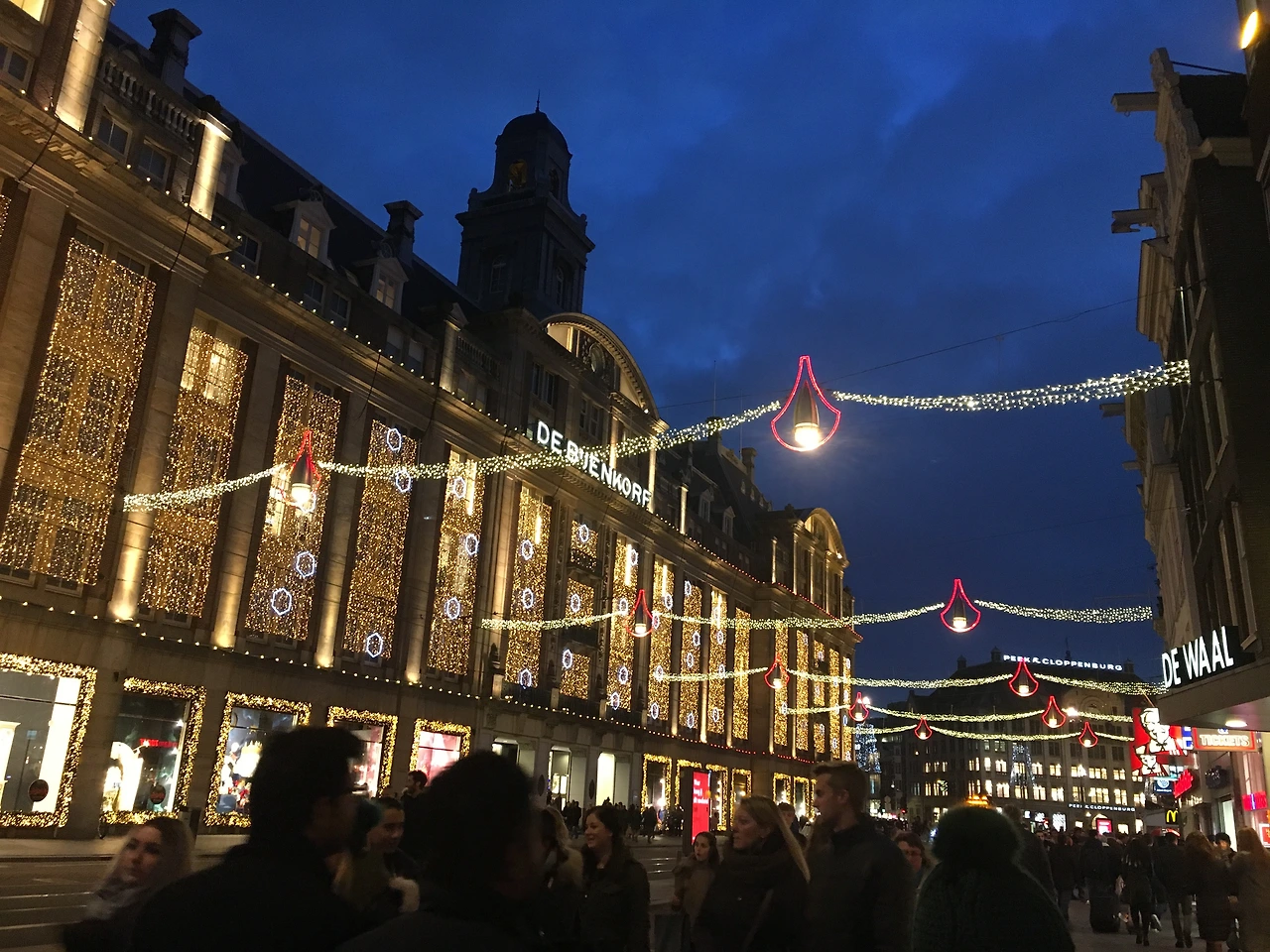 별 목적지를 정해두지 않고 그냥 앞을 향해 걸어가는 사이, 점점 해가 지기 시작했다. 오후 5시쯤 넘어서니까 마치 전 날의 헤이그처럼 '밤'이 되기 시작했다. 여기 와서도 느끼는 거지만, 네덜란드는 해가 지는 게 참 빠르다. 이틀째가 되도록 5시의 밤은 익숙해지지가 않는다. 그래도 크리스마스 장식으로 예쁘게 꾸며진 거리거리들은 그런 밤이 잘 어울리기도 했다. 아직 손님도 많은 시간 대니 더 쇼핑할 맛, 장사할 맛이 날 그런 시간이었다. 네덜란드에서의 5시는.