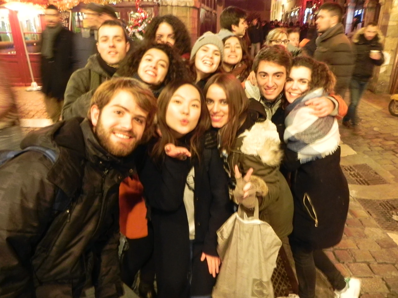 이 날 리옹에는 나를 포함해 총 10명이 향하게 되었다. 그중의 8명은 스페니쉬, 1명은 미국 국적의 콜롬비안(스페인 애들과 별다를 바 없는 그의 성격을 봐서는 콜롬비아 출신의 미국인이라고 하는 것보다는 이렇게 말하는 게 더 알맞은 거 같다), 그리고 나. 처음에는 같이 갈 친구들이 모두 스페니쉬인 줄 모르고 간 바람에 버스 정거장 앞에서 다 같이 모였을 때는 무척이나 당황스러웠다. 물론 그중에는 같은 학교 친구도 있었지만, 원래부터 내가 알고 지내던 친구는 두 명밖에 없었고, 나머지는 다 이 날 처음 만나는 친구들이었다. 이거 내가 가도 됐던 건가 싶기도 하고, 걱정도 되었었다. 하지만 언어, 소외감 등에 대한 불안과 걱정은 단순한 기우였다는 걸 깨닫는 데에는 얼마 시간이 걸리지 않았다. 리옹행 버스를 타 자리에 앉은 후 그들은 내게 당연하다는 듯이 "맥주 마실래? 와인 마실래?"라고 물어왔고, 맥주와 와인을 스페인어로 뭐라 하는지도 알려주며 자연스레 나도 그들의 무리에 스며들어갔다.