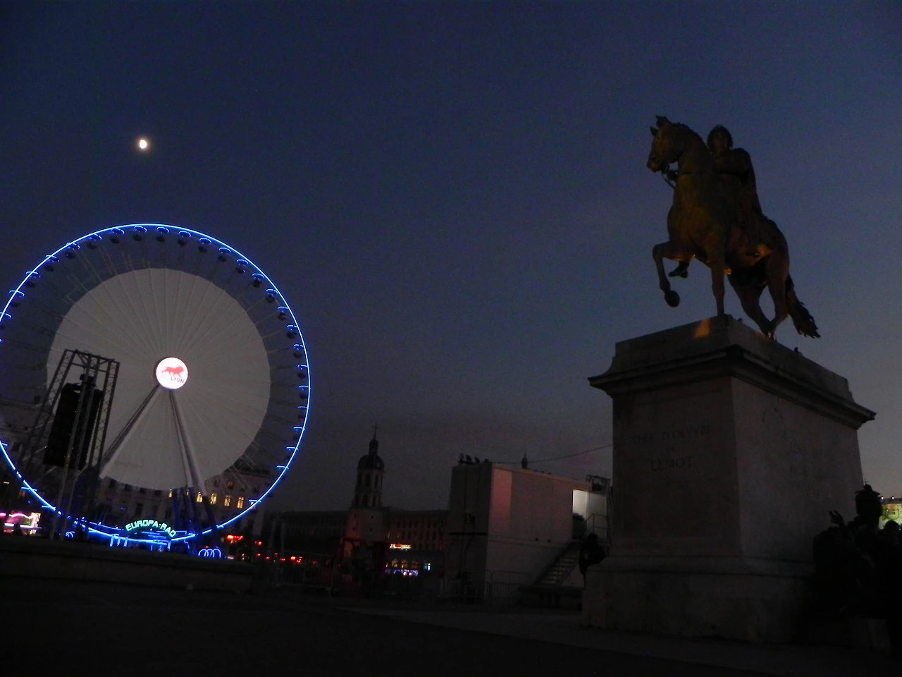 벨쿠르 광장에 도착하니, 예전에 처음으로 리옹에 왔을 때는 없었던 대형 관람차가 떡하니 우리를 맞이했다. 예전부터 느낀 거지만, 프랑스를 비롯한 유럽에서 회전목마나 관람차는 한 곳에 정착해 머물 물건으로 취급되지 않는 거 같다. 이곳에서는 행사나 축제가 있을 때는 큰 존재감을 뽐내는 놀이기구들도, 행사가 끝나면 마치 환멸 하듯이 우리 눈 앞에서 사라진다. 아마 이 관람차도 빛의 축제가 끝나면 눈 깜짝할 사이에 연기처럼 사라지겠지.