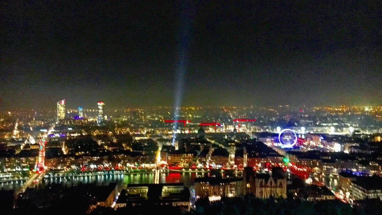 난 그런 그들을 흐뭇하게 바라본 후, 예전에도 내려다봤던 리옹 시내의 전경을 내려다봤다. 예전에는 구름이 살짝 낀 밝은 도시의 모습이었지만, 밤의 그것은 사뭇 다른 매력을 뽐내고 있었다. 게다가 빛의 축제 속 리옹이라니. 8시가 다돼가는 시간의 리옹은 슬슬 라이트업 준비를 마치고 쇼타임을 맞이하던 참이었다. 이렇게나 아름다운 빛을 머금은 도시의 모습은 아무리 좋은 카메라로 찍어본다 한들 직접 두 눈으로 보는 것만큼 그 감동을 전하기는 어려운 거 같다. 내 카메라가 유독 야경에 약한 것도(그리고 찍는 내가 야경에 약한 것도) 있긴 하지만, 그걸 떠나서 직접 봤을 때의 감동은 이루 말할 수 없었다. 이날 밤에는 구름이 안 껴있었던걸 정말 다행으로 여긴다.