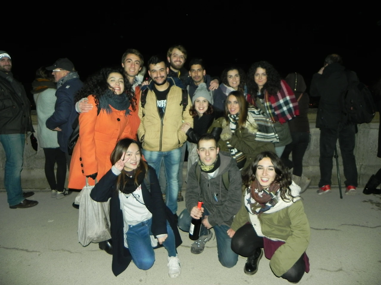 로마극장을 다 돈 후, 우리는 알코올 가득한 가방들을 돌려받고 다시 언덕 아래를 향해 내리막길로 걸어갔다. 안 그래도 힘이 넘치는 친구들이 다시 알코올이 손에 들어오니 더더욱 표정에 활기가 돋아났다. 내려가는 사이 친구들 중 제일 활발하고 우리를 이끌어주는 미겔이 노래를 틀기 시작했고, 그러자 친구들 모두 그의 휴대용 스피커에서 흘러나오는 음악에 맞춰 같이 노래도 부르고, 춤도 추기 시작했다. 빛의 축제를 상징하는 수많은 형태의 '빛'들이 그런 우리들을 영롱한 눈빛으로 내려다봤고, 지나가던 행인들도 그런 우리들의 축제를 바라보며 함께 즐기기도 하고, 어떤 사람들은 같이 춤추기도 했다.