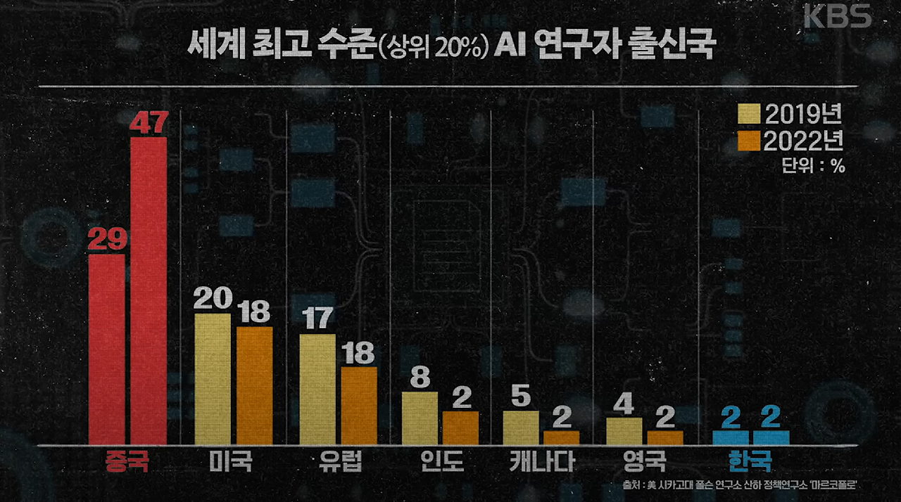 세계적인 과학저널인 네이처가 발표한 전 세계 연구 기관 순위인 [네이처 인덱스 2025]에 따르면 전 세계 연구기관 통 10중 8곳이 중국에 있다. 1위는 중국과학원(CAS)이며 한국의 서울대는 52위, KAIST는 82위로 견주기에도 민망한 수준이다. 인재 하면 뒤지지 않았던 한국은 왜 이렇게 된 것일까? 다큐를 보면 그 이유를 어느 정도 예상해 볼 수 있다. 중국 정부는 천문학적 규모의 R&D 투자와 더불어, 대학 입시 제도부터 창업 지원, 연구소 설립에 이르기까지 전방위적 지원을 아끼지 않았다. 특히 최고 성적을 거둔 학생들이 법학이나 경영학이 아닌 이공계로 몰리도록 유도하는 정책은 “공대에 미친 중국”이라는 표현을 낳았다. 2022년 기준 중국의 R&D 투자 규모는 4,400억 달러로, 미국에 이어 세계 2위 수준이며(세계은행), 매년 120만 명 이상의 공학계열 졸업생이 배출된다(OECD, UNESCO).