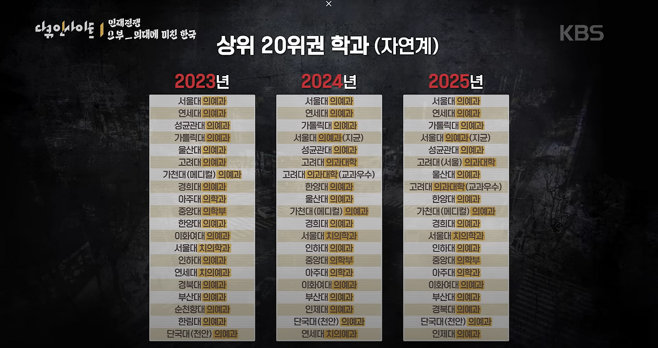 KBS 다큐인사이트 1부 [공대에 미친 중국]에 대한 글을 마치고, 2부 [의대에 미친 한국]을 봐야 하나 고민을 했다. 너무도 뻔히 보이는 결말이었기에 외면하고 싶었지만, 결국 보게 되었고 어렴풋이 알고 있던 사실들이 명확해지면서 답답한 마음과 함께 글을 쓰게 되었다.