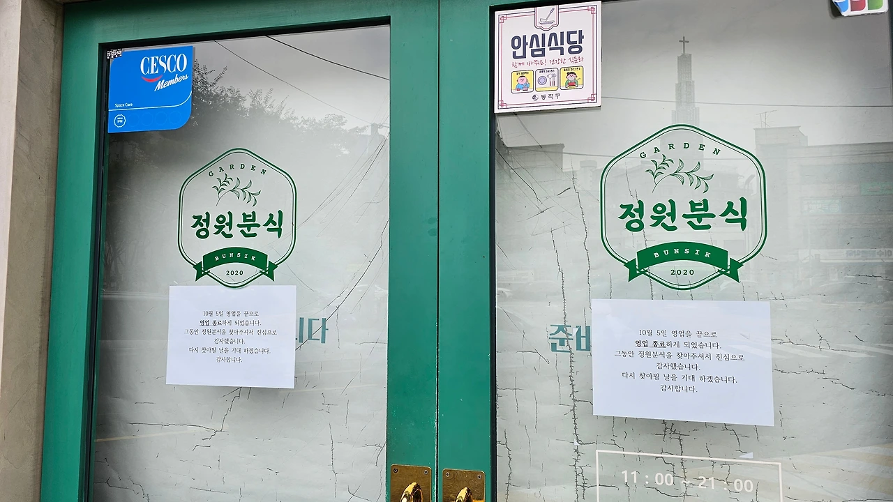 문제는 여기서 시작된다. 돈가스집이 생긴 후부터 분식집의 방문객이 줄어들기 시작한 것이다. 물론 정확한 데이터를 본 것은 아니지만 동네주민으로서 크게 체감된다. 일단 정원분식 앞 대기 줄이 사라졌다. 그리고 최근 정원분식 앞을 지나갈 때면 식당 안의 테이블이 꽤나 많이 비어있다. 심지어 최근에는 포장 20% 할인 행사를 한다는 문구가 식당 외벽에 걸려있기도 하다. 반면에 돈가스집은 여전히 오픈 전부터 늘 문전성시다. 아마 정원분식이 분식 치고는 양도 적고 조금 비싸게 음식값을 받는다 즉 가성비가 좋지 못하다는 의견이 기사로 나기도 했는데 그 문제도 한몫했으리라 보인다. 반대로 돈가스는 가성비를 충족시켜 주며 분식보다는 한 끼 식사로 더 낫다는 점이 고객의 발길이 지속되는 점 아닌가 생각된다.