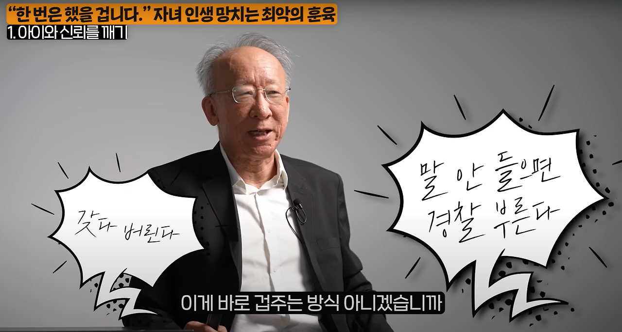 "자꾸 아빠 말 이렇게 안 들으면 경찰 아저씨가 오셔서 잡아간다!"