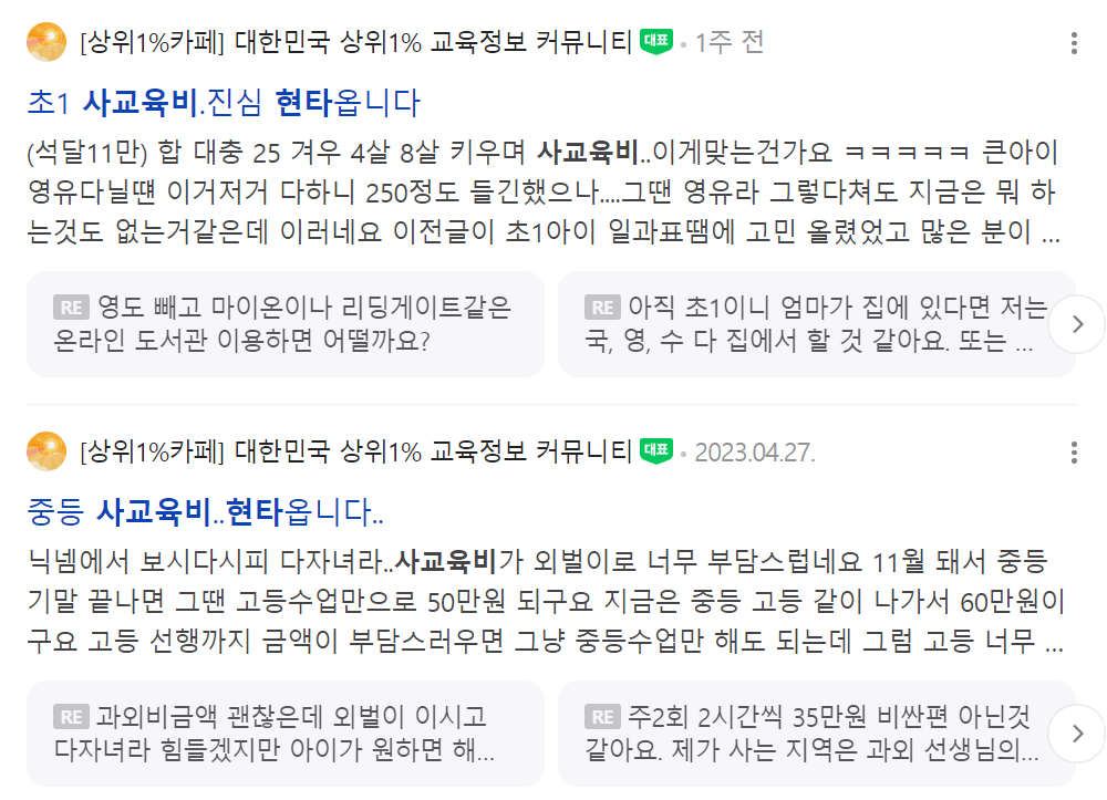 치솟는 사교육비 때문인지 인터넷에 사교육비 부담에 대한 글들이 참 많다. 실제로 3, 4세부터 5세에 인기 있는 영어유치원에 들어가기 위한 시험을 통과하기 위해 과외를 받거나 학원에 다닌다고 한다. 한창 뛰어놀아야 할 아이들은 5살부터 시험이라는 것을 경험하고, 누군가를 이겨야만 입학할 수 있다는 사실을 받아들여야 한다.