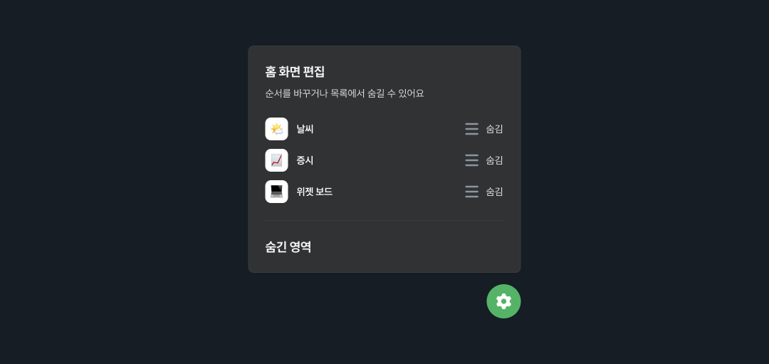 기존 숨겨져 있던 날씨/증시 정보 UI/UX 개선