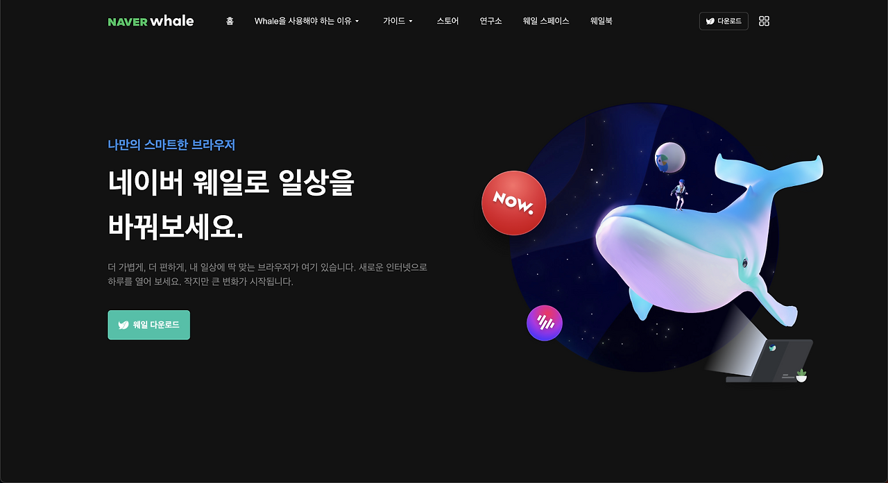 사실 네이버 웨일 브라우저에서 이번 프로젝트와 비슷한 경험을 제공해주고 있었습니다. 그리고 이전 네이버 PC 메인 상단 띠배너 영역은 항상 네이버웨일 홍보였습니다.