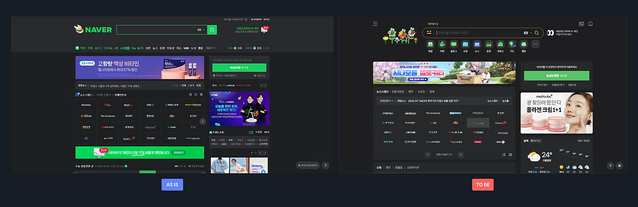 얼마 전, 5월 17일 네이버 PC 메인이 새롭게 개편되었습니다.