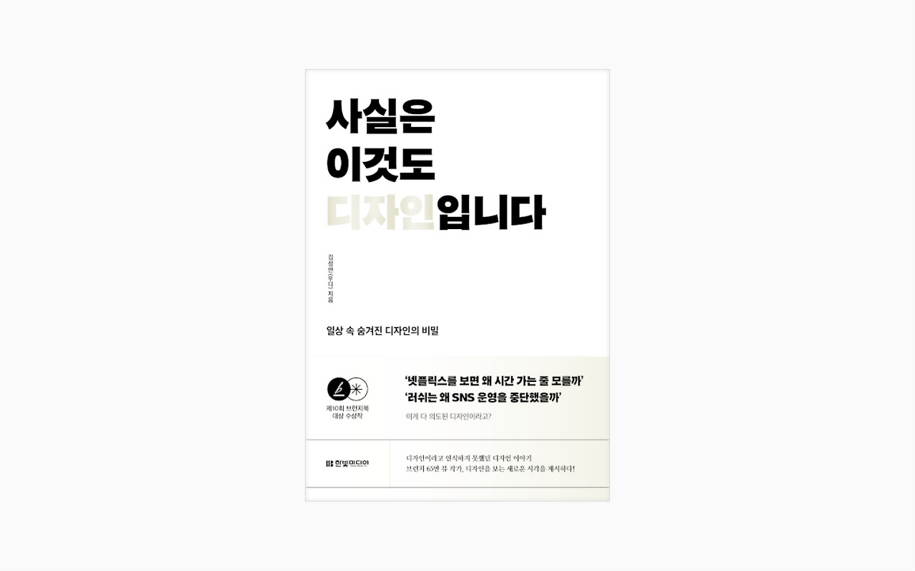 앞서 소개 드린 <사실은 이것도 디자인입니다> 책이 필요하신 분은 좋아요/구독과 함께 댓글로 메일 주소를 남겨주세요. 총 세 분을 뽑아 선물로 드립니다.