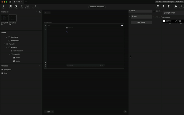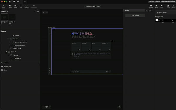 Protopie는 프토토타입 시 자체 input 기능을 제공하고 있어 추후 프롬프트를 실제로 입력해 볼 수 있습니다.