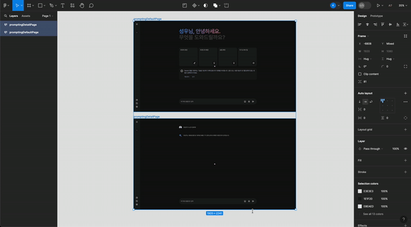 프롬프트 입력 전 화면, 프롬프트 입력 후 화면 2가지 페이지가 필요해요.