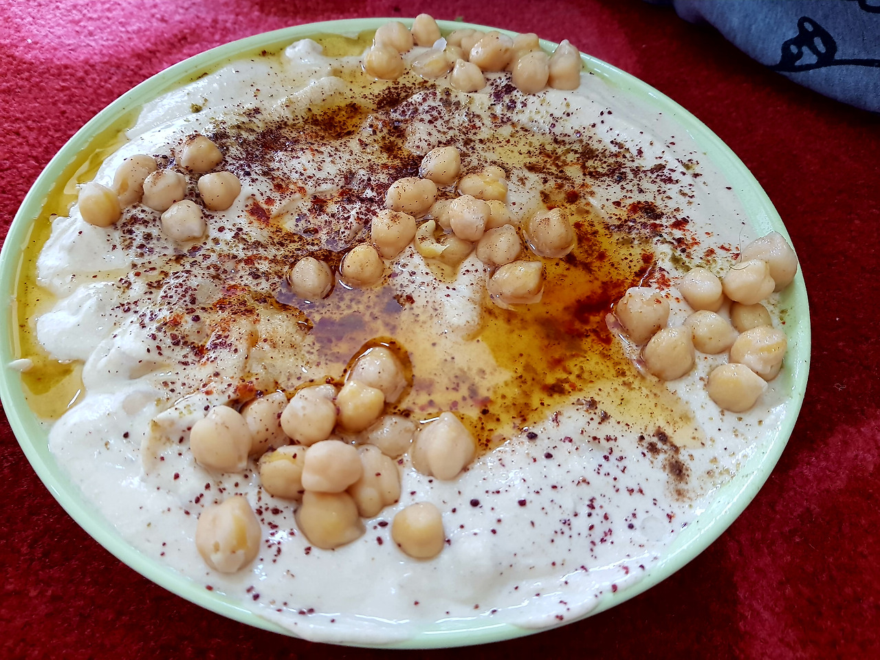 Alfo의 장점 중 또 하나는 호무스(Hommus) 를 맘껏 사 먹을 수 있다는 것이다. 영드 '미란다'에서였나, 남자 옷깃에 호무스가 묻어서 부인이 타박하는 장면이 나오는데 어찌나 먹고 싶던지. 위 사진은 친구 집에 갔을 때 대접 받은 호무스 였는데 저 흰 콩을 갈아서 만든 뿌연 것이 콩 아래로 보이는 희고 걸쭉하고 부드러운 호무스다. 그 위에 오일까지 얹힌 뒤 별로 맵진 않고 쌉싸름한 붉은색 향신료를 뿌리면 요리가 완성된다. 아래 사진은 또 다른 종류의 호무스인데 이름이 어려워서 잊어버렸다. 둘 다 부드러운 맛이지만 미묘하게 한쪽은 더 담백하고 다른 하나는 더 달콤 고소했다. 알포에서 통조림에 호무스뿐만 아니라 종이처럼 납작한 아랍식 빵도 구입 가능한데, 빵에 호무스를 찍어 먹으면 된다. 꿀맛이다.