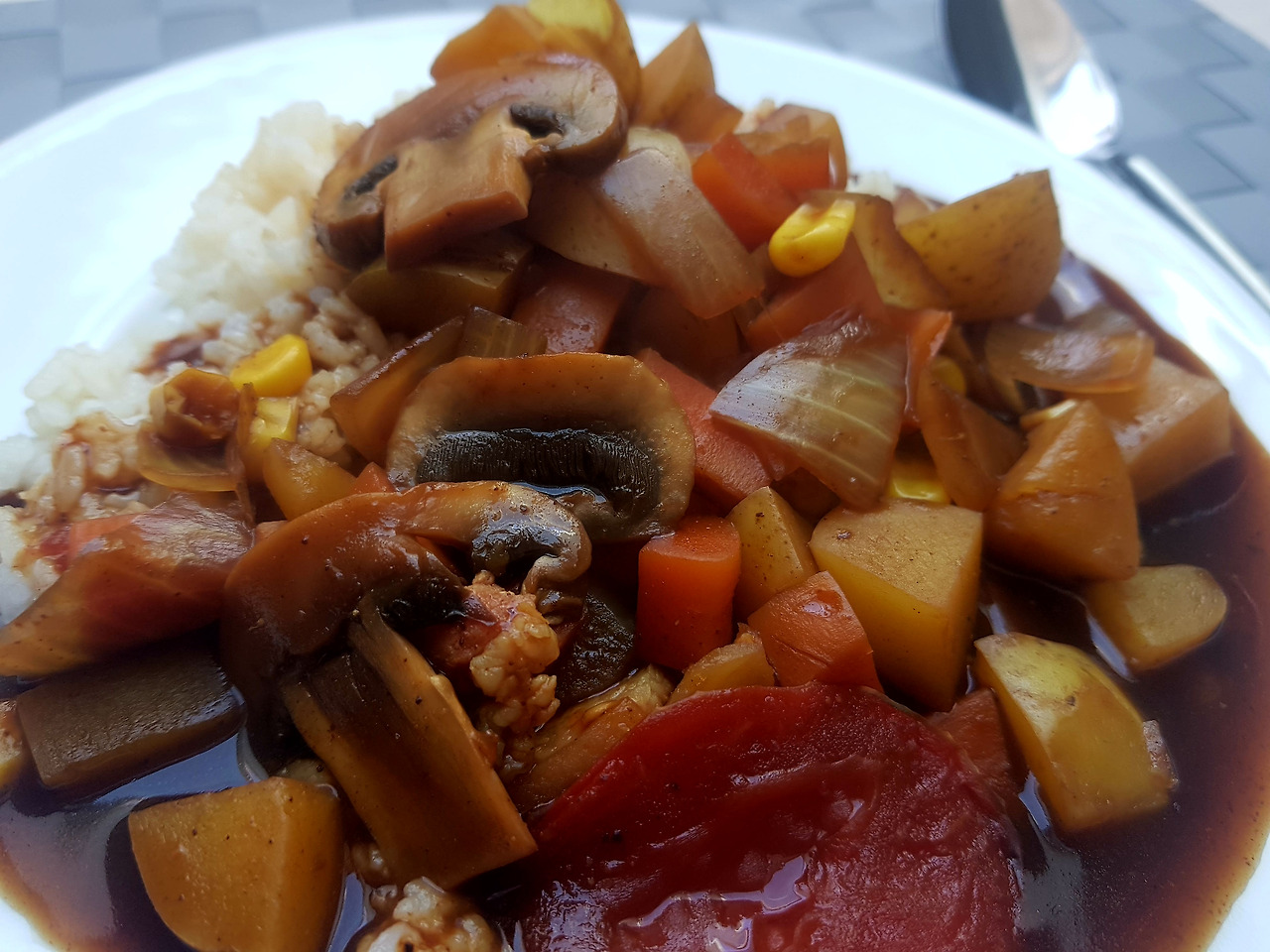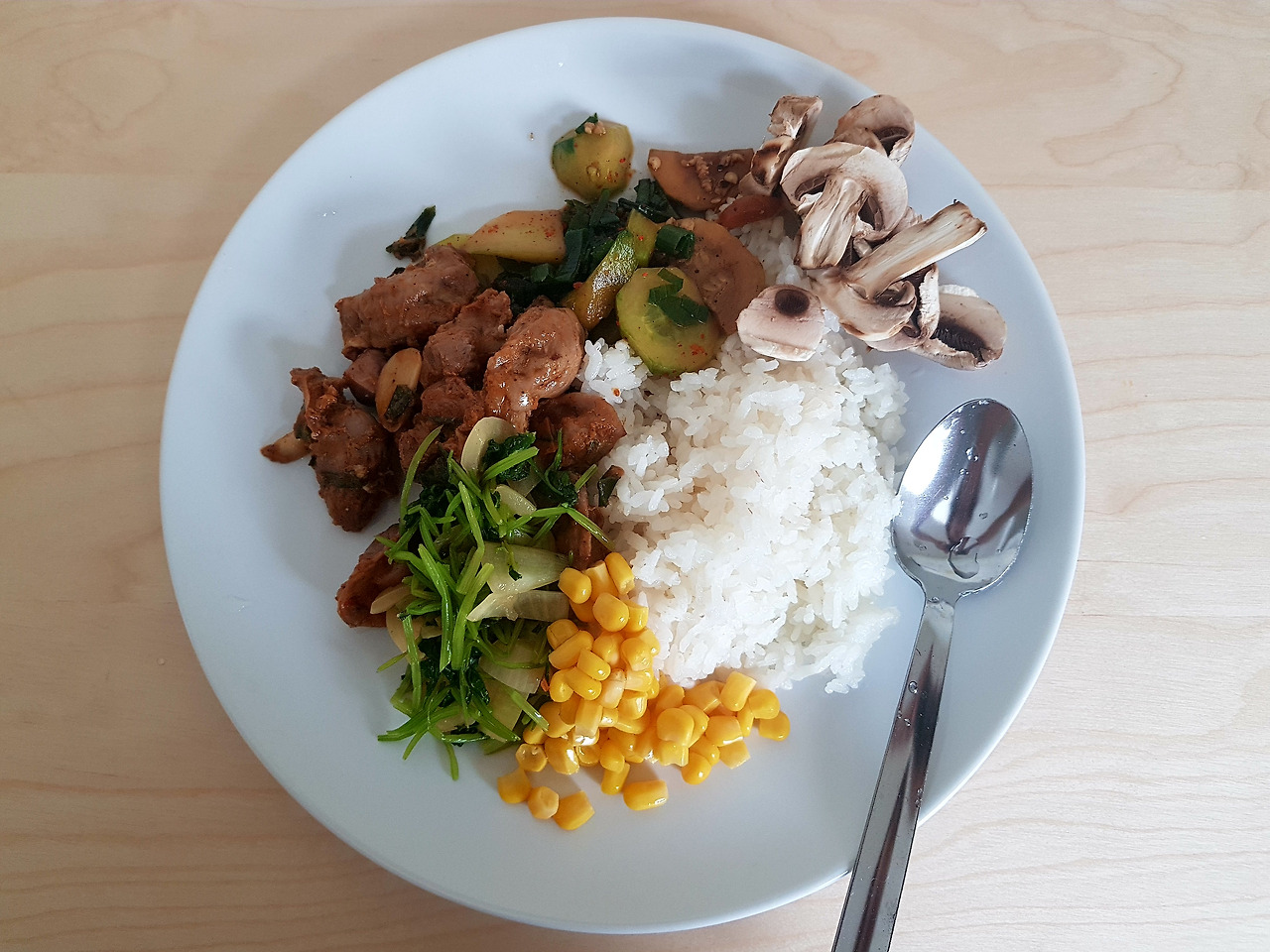 조금 지겨워지면 한국에서 가져온 짜장 소스를 풀어서 당근, 감자, 버섯, 옥수수를 넣고 볶아 먹어도 된다.