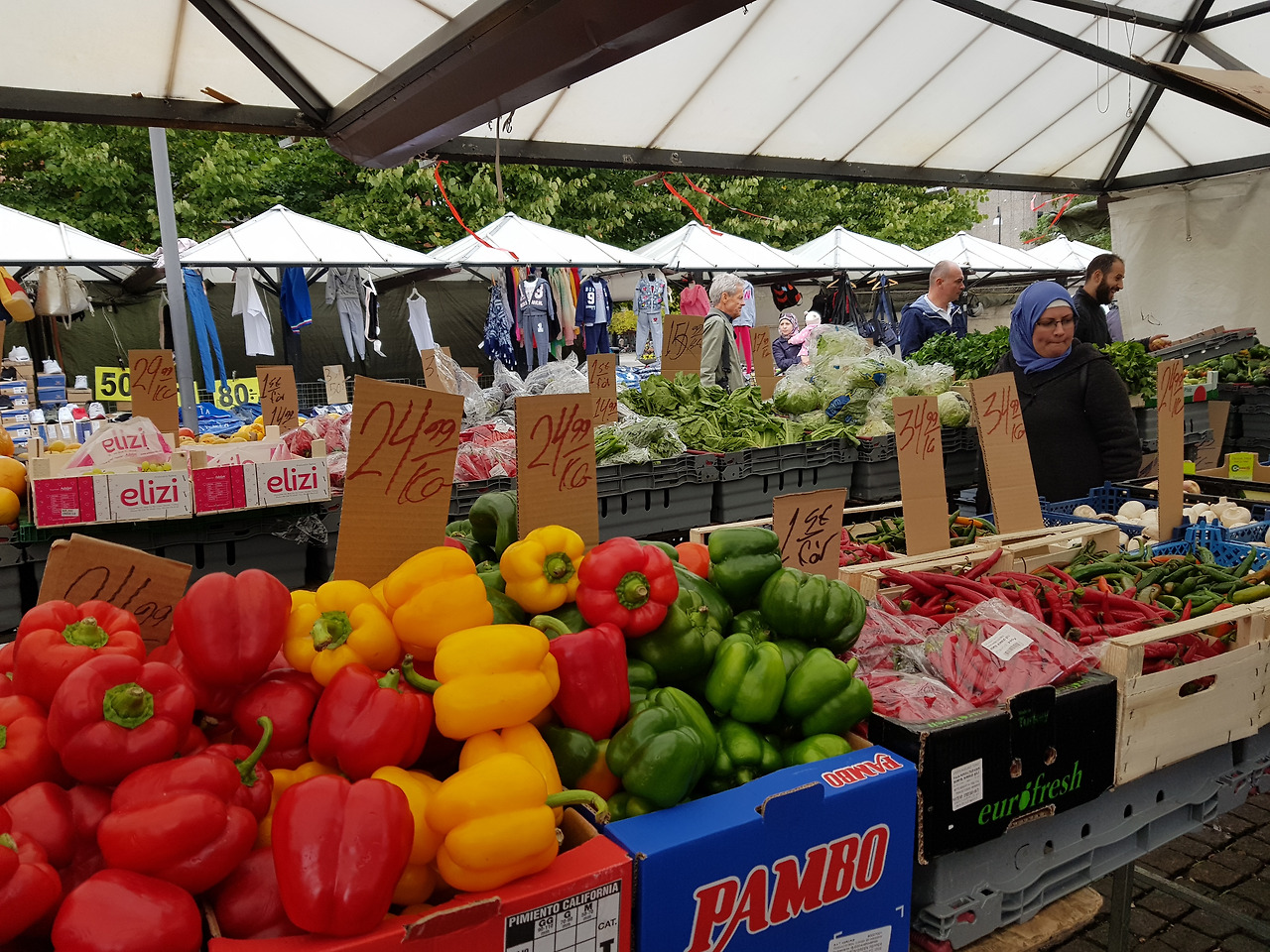 학교 캠퍼스와도 가까운 거리에 위치한 동네 광장에 매일 오전 11시~오후 6시까지 문을 연다. 주로 무슬림들이 운영하는 가판대에서 파인애플, 바나나 같은 과일부터 브로콜리, 양파, 적양파, 양송이버섯, 상추, 양상추, 오이, 가지, 마늘, 대파 같은 채소를 판다. 질도 좋고 신선한 편이고 가격이 ICA나 Alfo 같은 마트보다 현저하게 싸다. 한국 마트에서 구입했을 때 1만 원 정도라면 여기서 웬만한 식재료를 구입하면 3천~4천 원이 들기 때문에 채소과일류는 무조건 여기에서 구입한다. 특히 한국에선 비싼 양송이버섯을 상대적으로 싼 가격에 구매할 수 있어서 좋다.