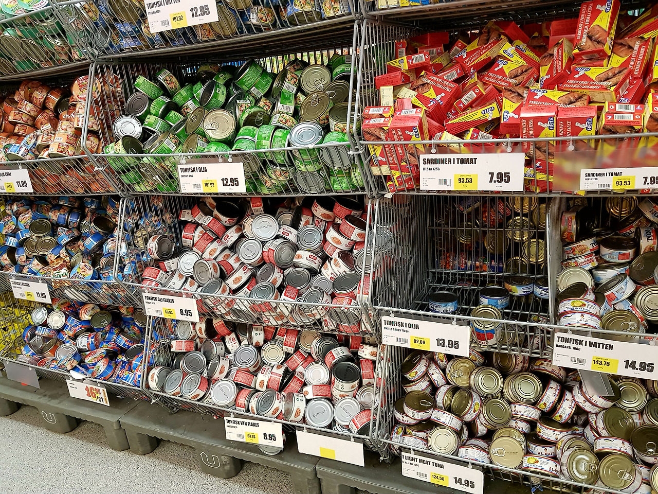 한국에서도 파는 커피믹스(커피, 프리마, 설탕이 한 봉지에 담긴)도 판매한다. 단 양이 많아서 3등분으로 나눠 쓴다. 그 외 무슬림 마트답게 각종 차(터키 차, 재스민차, 잉글리시 블랙퍼스트 포함 홍차, 말차, 과일차)를 파는 코너가 풍성한 것도 장점이다. 밑에 사진처럼 참치 통조림도 팔기 때문에 김장만 담근 뒤 다 먹고 남은 재료를 냄비에 넣고 저기 통조림을 하나 까서 넣으면 김치찌개가 완성된다. 알포에는 치즈 코너도 풍성한데, 제법 먹어보니 질 좋고 양도 많았다. 청어를 각종 양념에 담아 절여 내놓은 유리병은 크기가 작고 비쌌는데 이건 ICA가 더 저렴했던 것 같다. 요새 크리스마스를 앞둔 연말이라 ICA가 세일에 들어가서 그런 걸지도 모르겠다. 케바케.