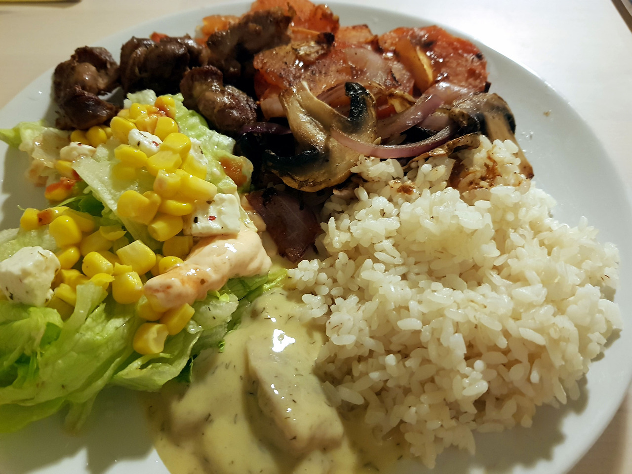 이렇게 미리 씻은 상추와 토마토, 양송이버섯을 냉장고에 넣어놓고 아침 수업을 듣기 전 치즈와 옥수수, 매실청, 올리브유를 곁들여 먹으면 좋다. 귀찮으면 마트에 파는 콘푸레이크 류에 우유, 요구르트나 프로틴 제품을 넣어 먹어도 된다. Alfo Gross의 견과류 코너에서 땅콩 등을 사서 같이 뿌려 먹어도 좋다.