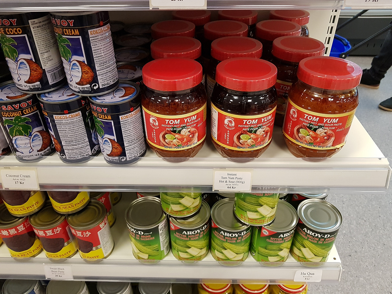 헬싱보리 중앙역 옆에 중국인이 운영하는 아시안 마트가 하나 있고 건너편에도 베트남인이 운영하는 아시안 마트가 있다. 개인적으론 중국인이 운영하는 업소가 더 크고 한식 재료가 많았던 것 같다. 만두, 양파링, 당면, 국수, 떡국용 떡, 빼빼로, 김장재료뿐만 아니라 태국, 베트남 음식재료도 팔고 있었다. 일전에 한국 떡에 열광하는 떡 마니아인 스웨덴인 V양의 말을 듣기로는, 헬싱보리 공공도서관 건너편에도 새로운 아시안 마트가 생겼다고 한다. 거긴 떡을 판다고 하니 떡 성애자라면 필히 방문해봄직 하겠다.