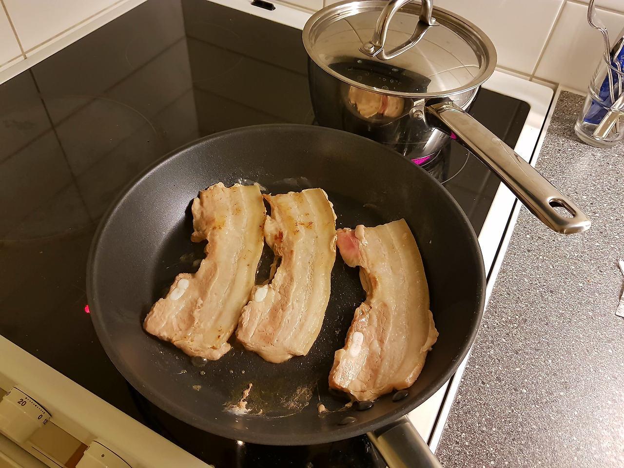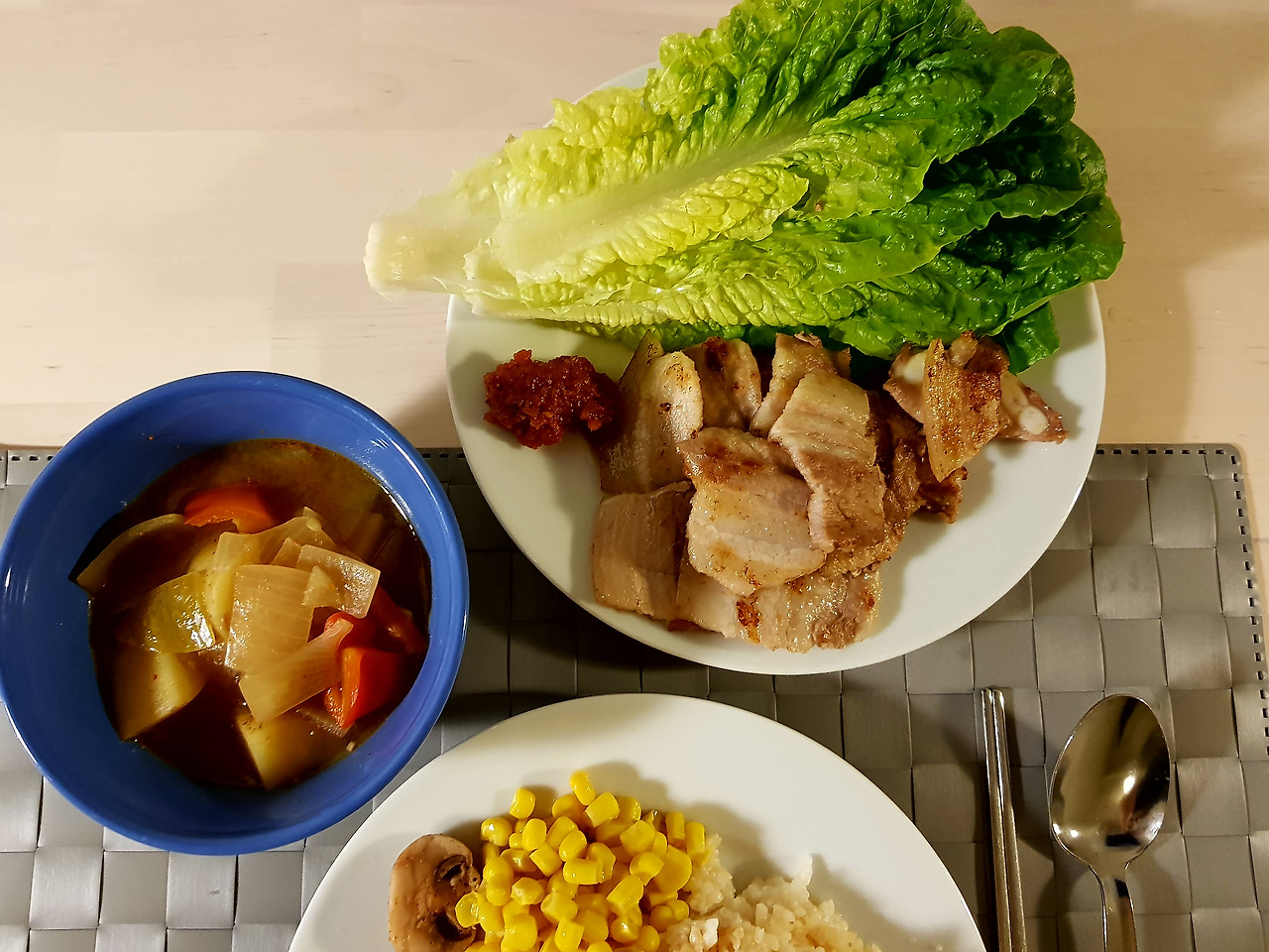 ICA에는 삼겹살도 판다. 가격이 꽤 센 편이긴 하지만 가끔 먹어준다. 한국에서 가져온 쌈장을 곁들여.