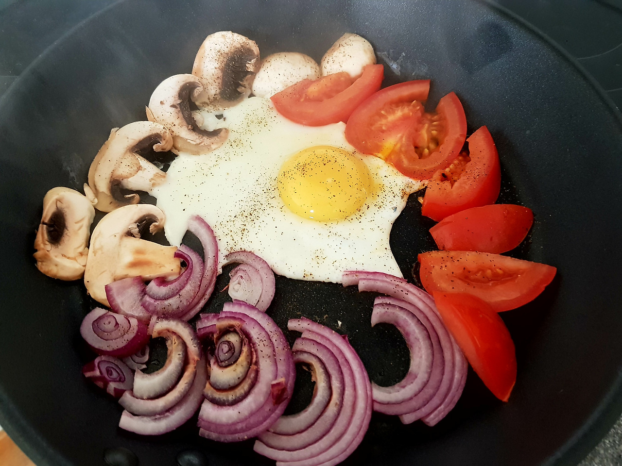 제일 요리하기 싫을 때 먹는 간편식이다. 기름을 두르고 양파, 토마토 등 재료를 한꺼번에 익히고 후추만 뿌려주면 끝.