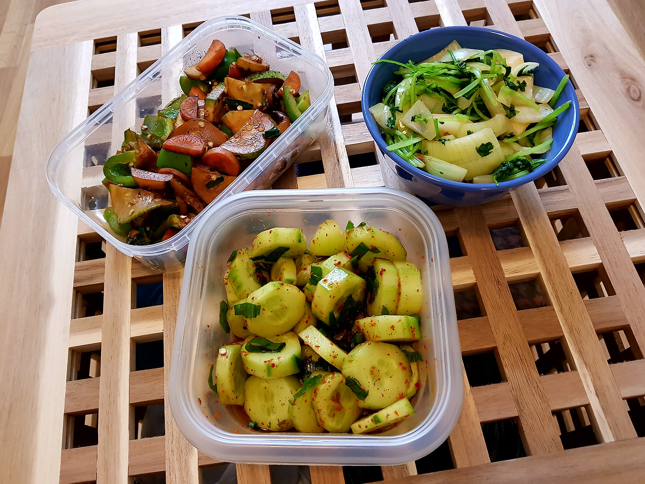 매일 해 먹는 게 귀찮아서 절임류 채소를 만들었는데 일단 식으면 나물은 맛이 없다. 그리고 스웨덴에 와서 웬만한 재료는 다 찾기 쉬운데 나물류(고사리, 콩나물, 도라지 등)는 참 찾기가 어려웠다. 시금치인 줄 알고 집에 와서 무쳐 먹으려 했더니 알고 보니 샹차이라.. 결국 저 나물은 먹다 포기하고 버렸다. (유학을 오시는 분들은 건나물을 짐으로 부치세요. 무게도 안 나가서 많이 넣을 수 있습니다)