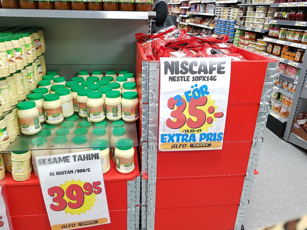 일일장이 서는 광장 바로 옆에 알포라는 무슬림들이 운영하는 대형마트가 보인다. 그래서 일일장에서 밑반찬 채소를 사고 가공식품은 알포에서 구입하면 되기 때문에 장보기가 편하다. 알포의 장점은 ICA보다 가격이 현저하게 저렴하다는 것. 할인가에 구입할 수 있지만 개인적으로 육류나 빵 같은 물건은 품질이 ICA보다는 떨어지는 것 같았다. 대신 과자나 아이스크림, 쌀, 생리대, 화장실 청소용품, 방향제, 수세미, 일회용 장갑, 세제, 화장용 솜 같은 자잘한 물품들을 헐값에 팔고 ICA보다 물품 종류가 다양할 때가 많다. 다이소 같은 느낌.