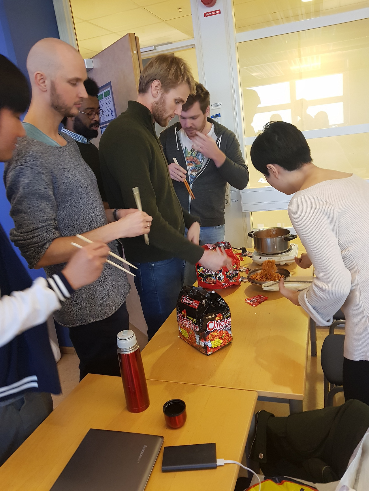 '라이트 나이트' 행사는 정말 별것 없었다. 그냥 5시부터 앉아서 각자 글을 쓰고 틈틈이 휴식시간에 개인이 알아서 복도에 나가 커피나 홍차, 페퍼카커(스웨덴식 진저 쿠키)나 초콜릿을 먹으며 피카 시간을 가지는 게 전부다. 그날은 글뢰기 Glögg (와인에 계피, 시나몬, 설탕 등을 넣어 끓여 먹는 달다구리 한 음료, 겨울철에 주로 먹는다)가 나왔는데 추운 날씨에 벌벌 떨다가 따뜻한 강의실에서 글뢰기를 홀짝이며 낯선 친구들과 과제를 하는 게 너무 행복했다. 날씨가 구려서 그런지 작은 것에도 만족도가 높아지는 것 같다..