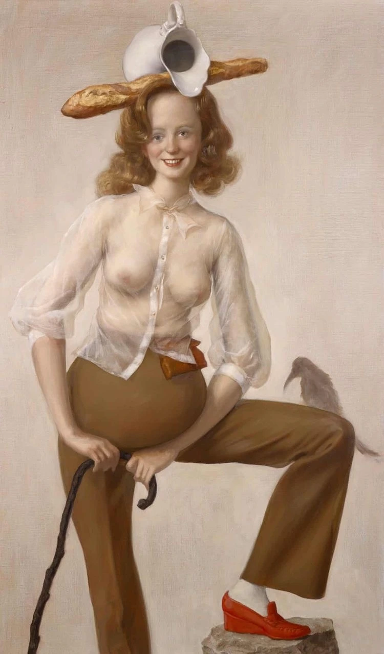 그러니까 팝아트, 애니메이션에 등장하는 소재, 인물을 로코코 스타일로 묘사했다. 현대 여성 모델의 과장된 몸매, 성모화에서 이상화된 여체의 굴곡, 그런데 그런 몸을 '실제로' 가질 법한 여성이 겪어야 하는 중력의 법칙을 '리얼리스틱'하게 적용했다. 과거의 이상과 현재의 이상과 진짜 '현실'의 조합이다.
